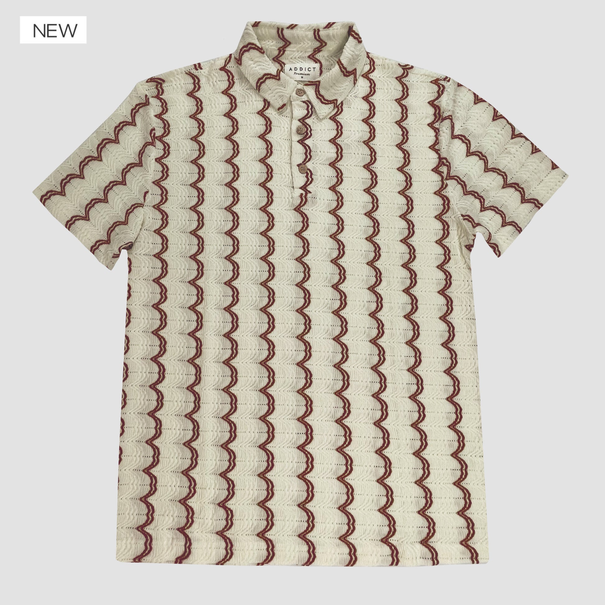 Camisa tipo polo de manga corta con tejido texturizado y diseño de ondas en contraste. Confeccionada en una mezcla de 55% algodón y 45% poliéster, combina la suavidad y frescura del algodón con la durabilidad y fácil cuidado del poliéster, ideal para usar todo el día.