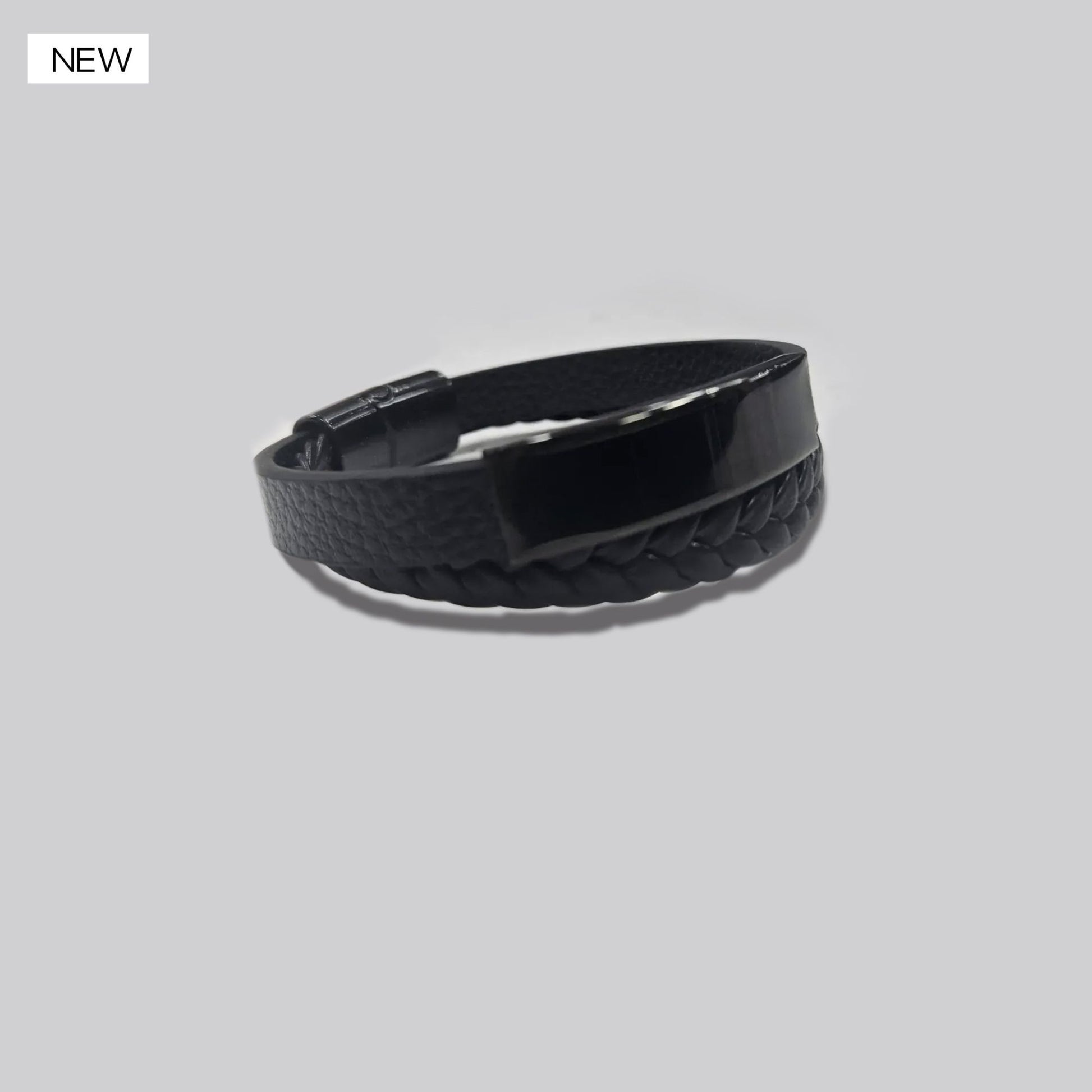 Dale un toque audaz y moderno a tu estilo con este brazalete masculino en cuero negro. Elaborado con múltiples tiras entrelazadas —incluyendo una banda plana y dos trenzadas— este accesorio combina elegancia rústica con una vibra rebelde y urbana.