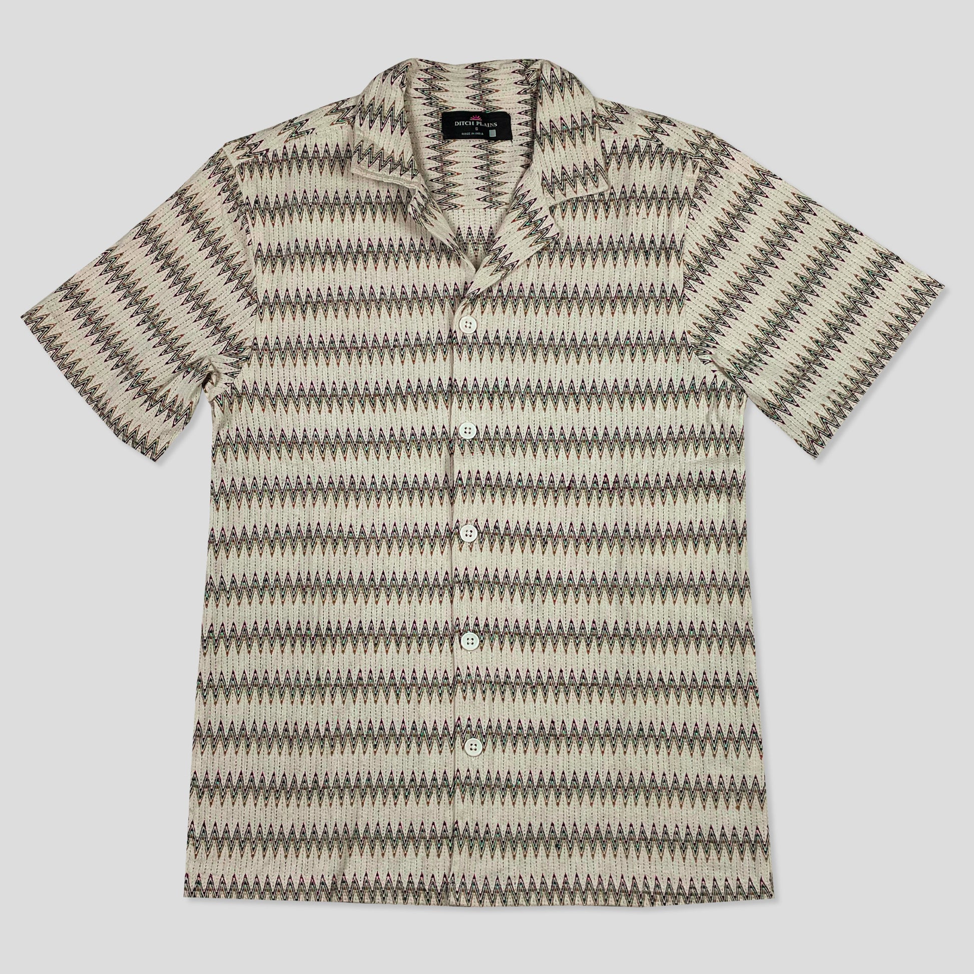 Esta camisa de manga corta destaca por su patrón zigzag ideal para quienes buscan un look retro, relajado y con clase. Su diseño liviano y su caída suave la hacen perfecta para climas cálidos y salidas informales con estilo.