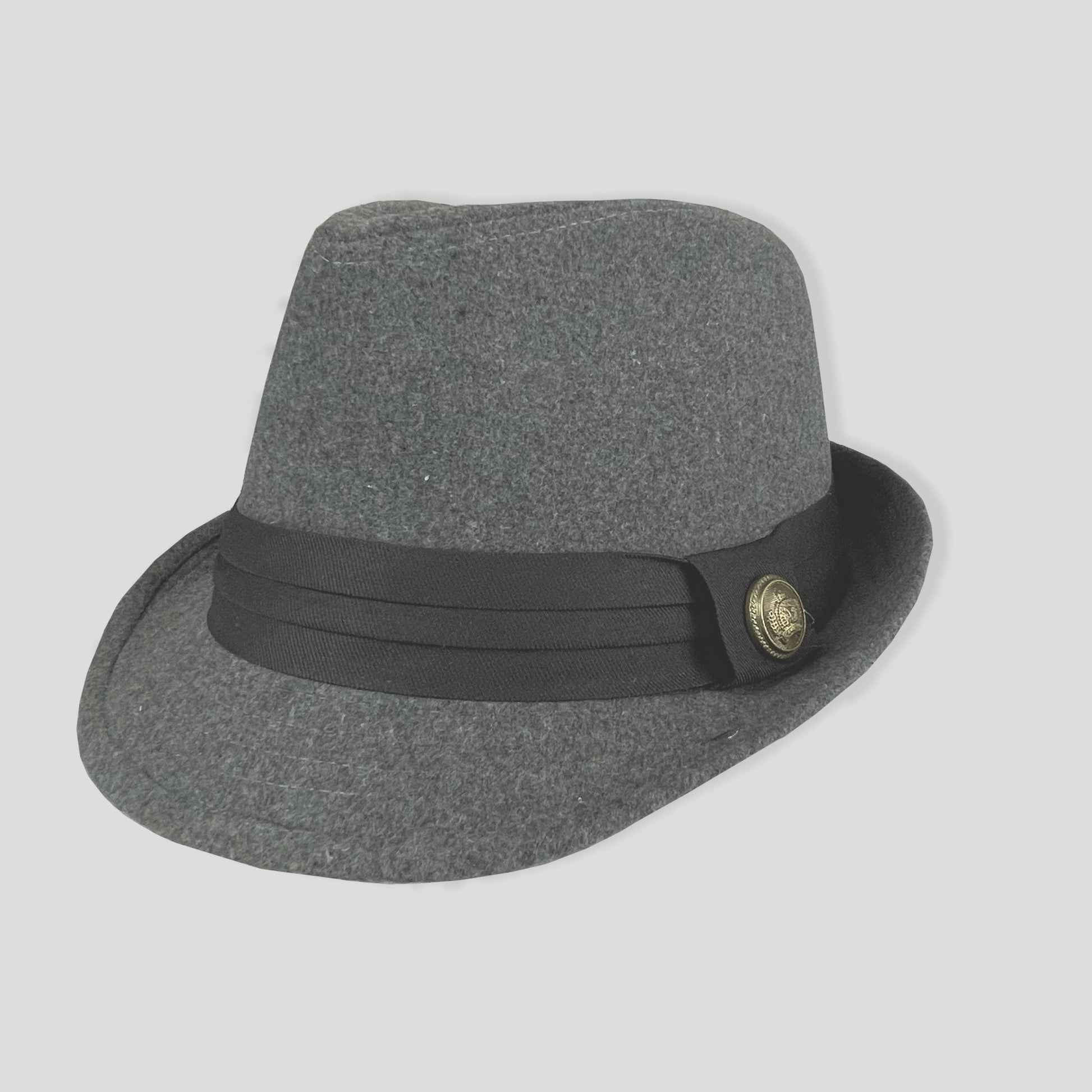 Sombrero tipo fedora en color gris, confeccionado en material tipo fieltro que brinda una apariencia sofisticada y atemporal. Su diseño clásico se complementa con una cinta decorativa en color negro y un detalle metálico lateral, aportando un toque distintivo y refinado. Ideal para climas frescos o para elevar outfits casuales y formales con estilo. Un accesorio versátil que añade personalidad y elegancia a cualquier look.