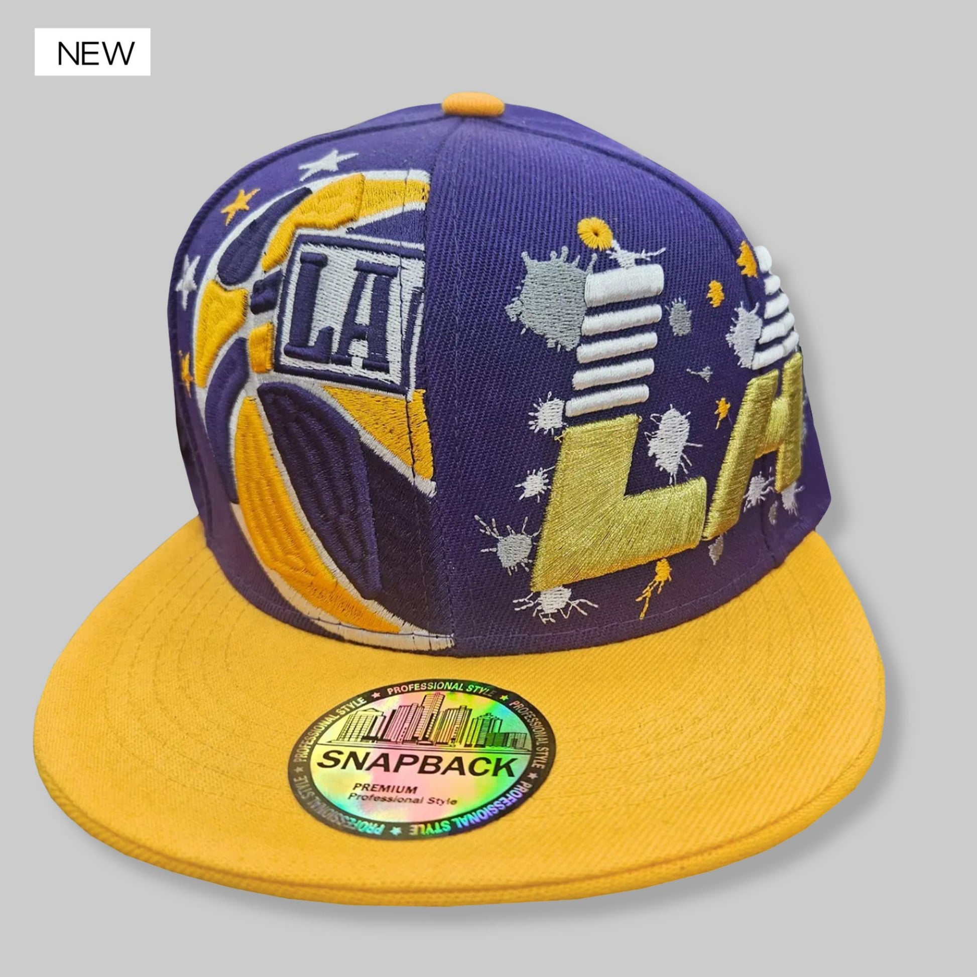 Demuestra tu pasión por el estilo urbano y el deporte con esta gorra snapback inspirada en Los Ángeles. Su diseño bordado en tonos púrpura y amarillo rinde homenaje al espíritu del baloncesto angelino, combinado con un toque gráfico moderno y atrevido.