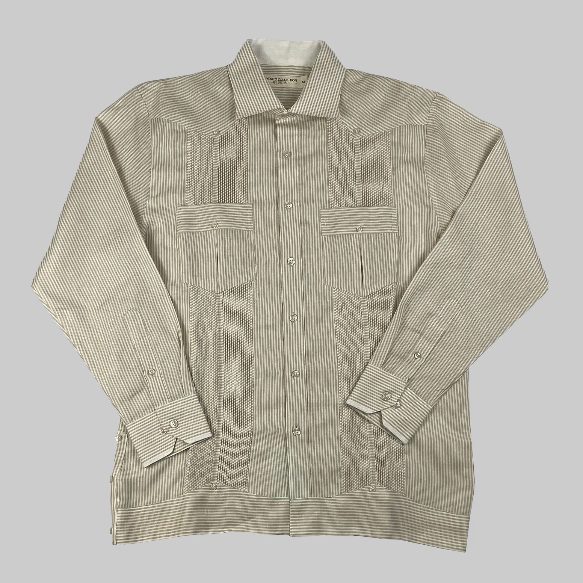 Las Guayaberas Mojito de manga larga están confeccionadas en 100% lino, una fibra natural ideal para mantenerte fresco, elegante y cómodo en cualquier clima. Este diseño clásico incorpora alforzas finas al frente y en la espalda, junto con cuatro bolsillos funcionales, que realzan su estilo tradicional caribeño con un toque contemporáneo.