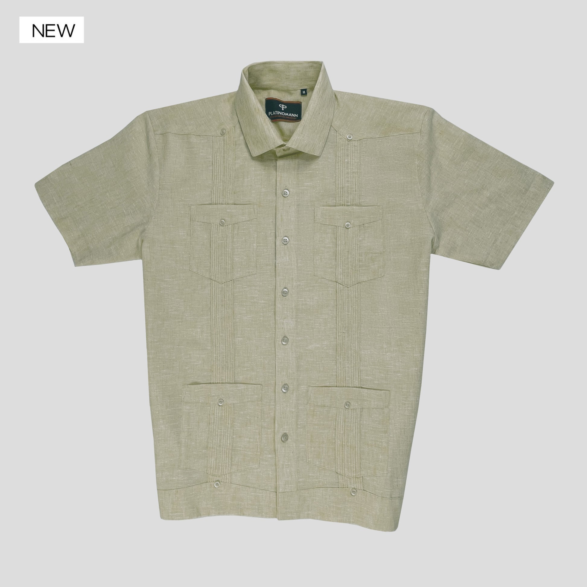 Guayabera PlatinoMann de manga corta confeccionada en tela ligera y fresca ideal para climas tropicales. Su diseño clásico incluye cuatro bolsillos frontales, alforzas verticales y botones al tono que realzan su estilo tradicional. Perfecta para actividades informales, eventos especiales o para un look casual y cómodo durante el día.