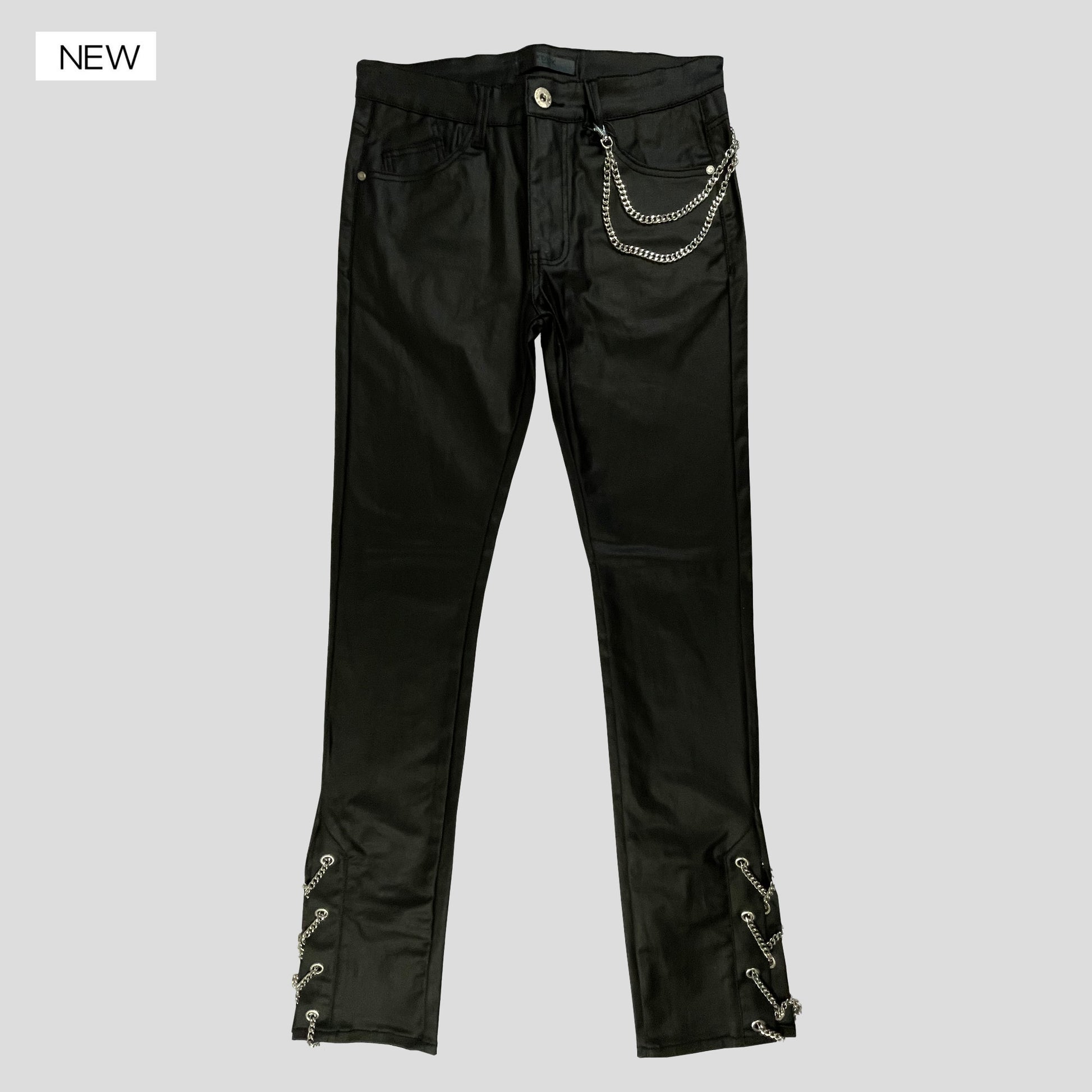 Sus detalles de cadenas metálicas en el bolsillo y en la parte baja de las piernas le dan un toque rebelde y distintivo. Ideal para combinar con tenis o botas y destacar con estilo.