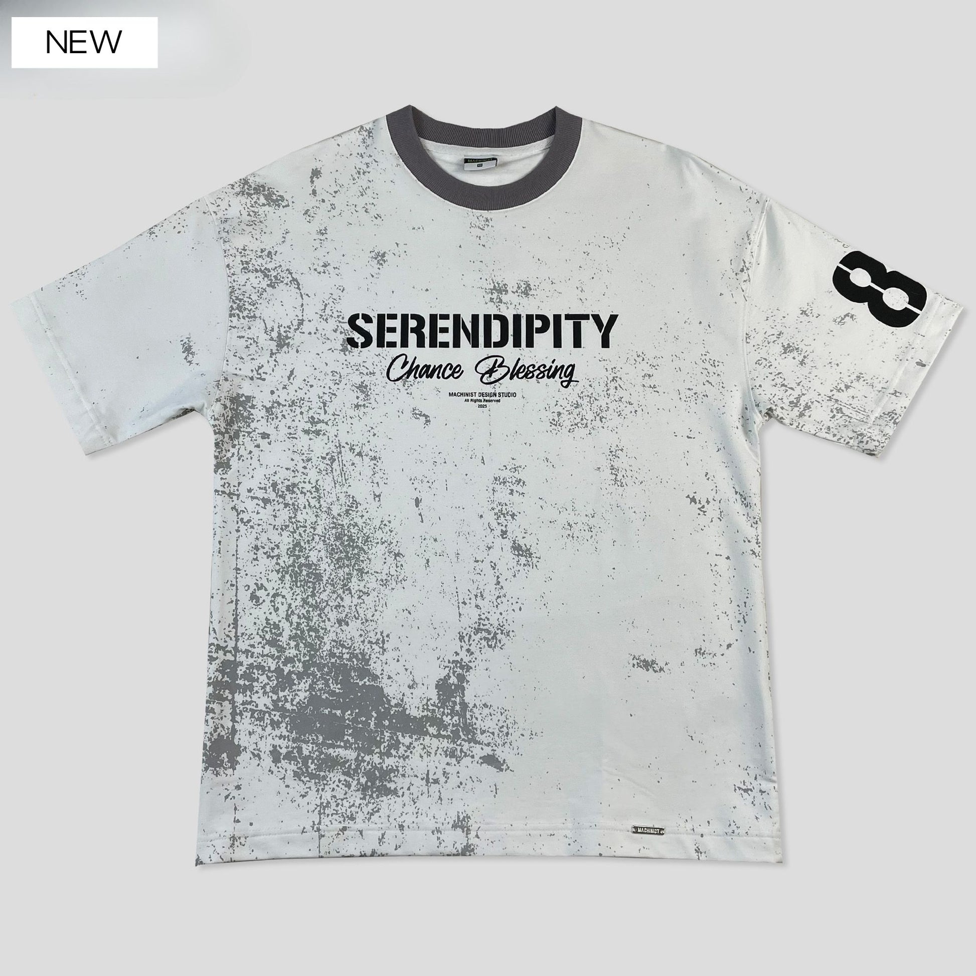 Rompe con lo convencional con esta camiseta Machinist de corte oversize. Su diseño urbano con efecto desgastado y el mensaje "Serendipity – Chance Blessing" al frente la convierten en una prenda única que combina estilo callejero con actitud. El cuello en contraste y el gráfico en la manga añaden personalidad extra a esta pieza moderna.
