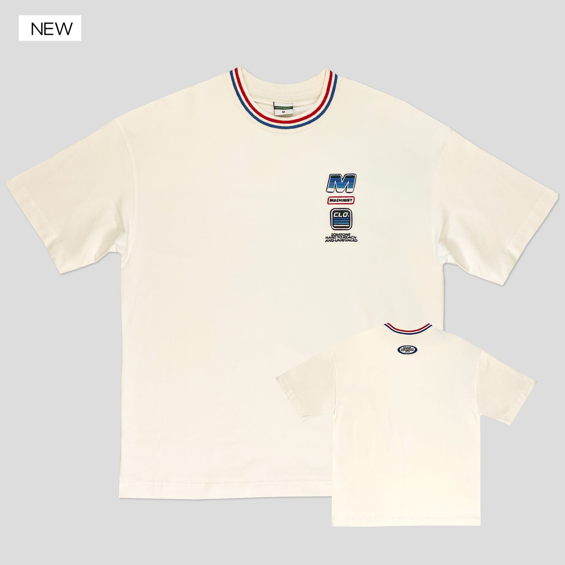 Minimalismo industrial con un toque retro. Esta camiseta Machinist en color ecru presenta un diseño limpio y moderno con gráficos tipo parche inspirados en la estética mecánica. Su cuello ribeteado en rojo, azul y blanco añade un contraste distintivo que eleva el look sin esfuerzo. Perfecta para quienes aprecian el diseño funcional con estilo urbano.