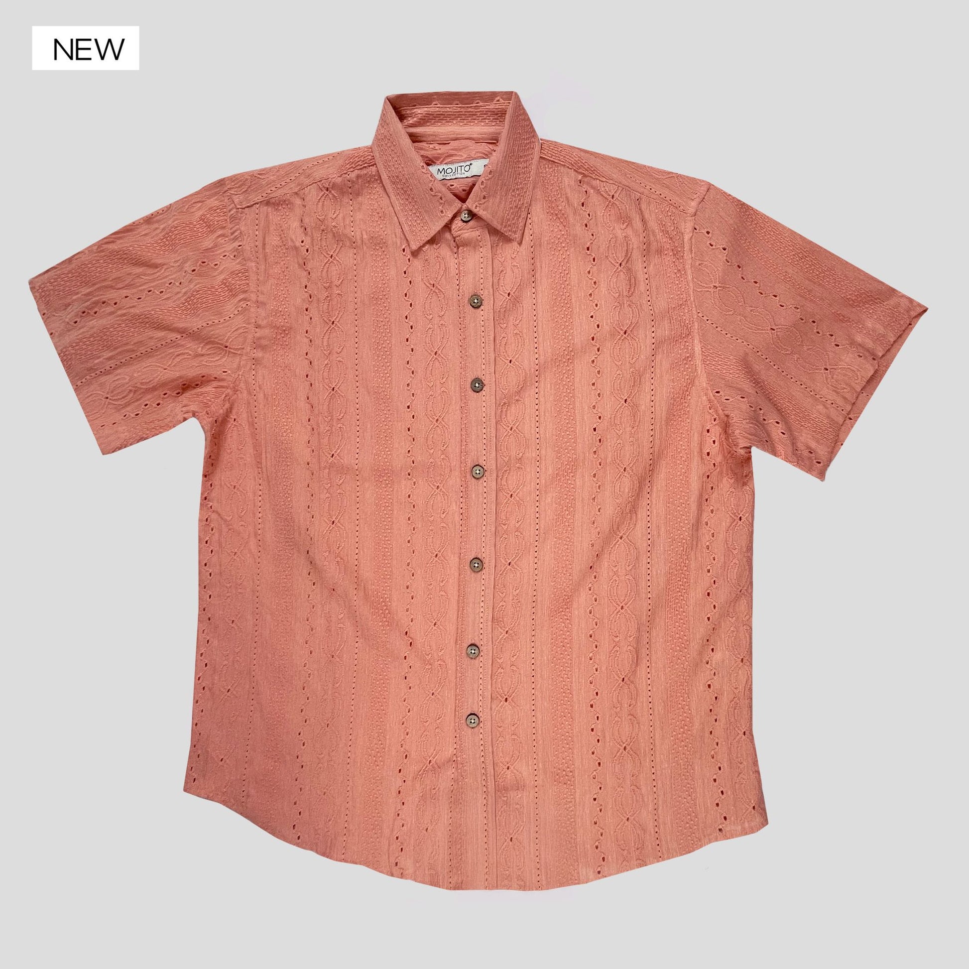 Camisa Mojito manga corta confeccionada en un tejido ligero y súper cómodo, con diseño calado tipo bordado que le da un look moderno y fresco. Su mezcla de 92% poliéster y 8% spandex ofrece suavidad, caída elegante y el stretch perfecto para moverse con libertad. Ideal para días calurosos, salidas casuales o para darle un toque diferente a tu outfit de verano.