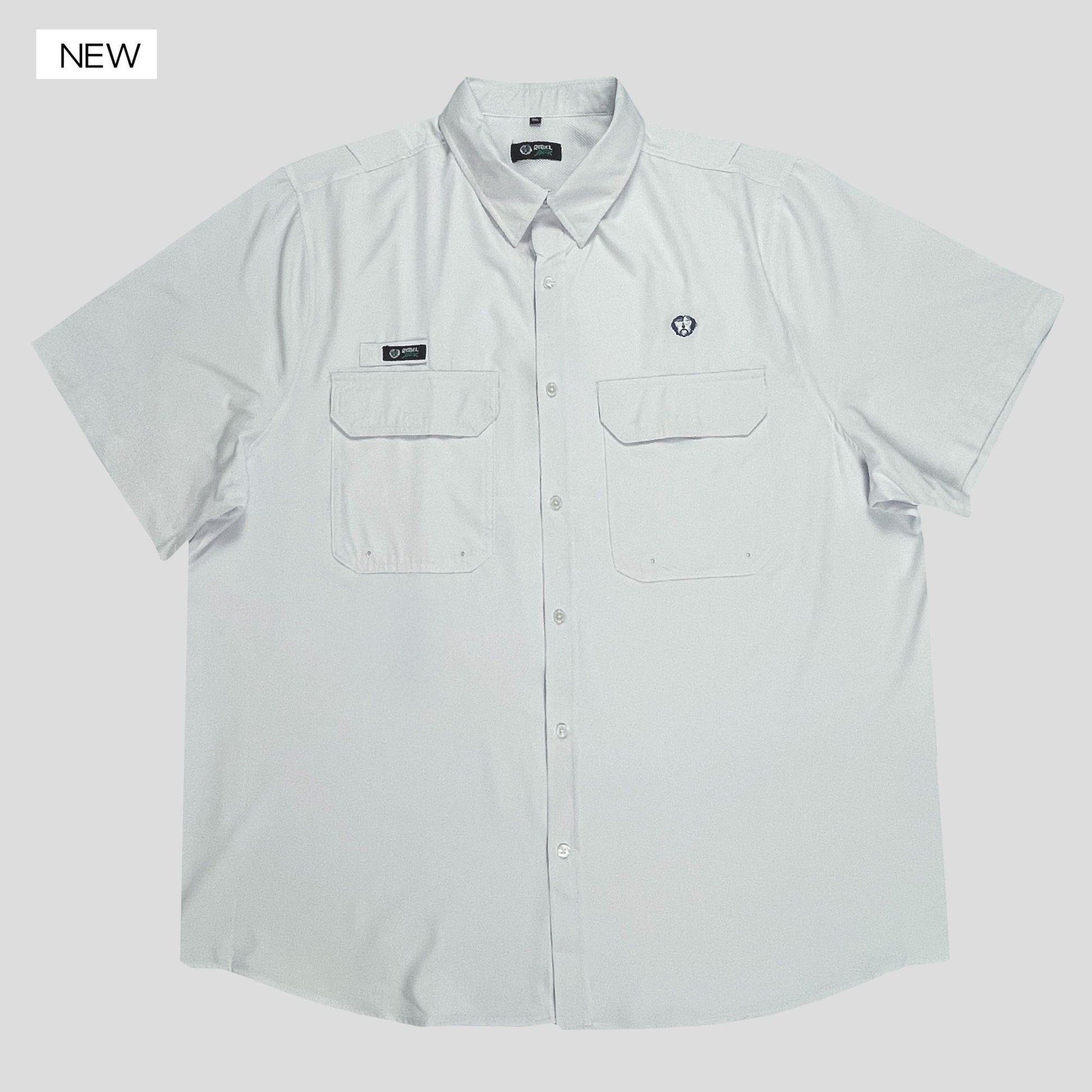 Su diseño de manga corta incluye bolsillos frontales funcionales, botones resistentes y detalles bordados que realzan su carácter moderno y práctico. El tejido de secado rápido ayuda a mantenerte fresco, mientras que la flexibilidad del spandex aporta libertad de movimiento en cada aventura.