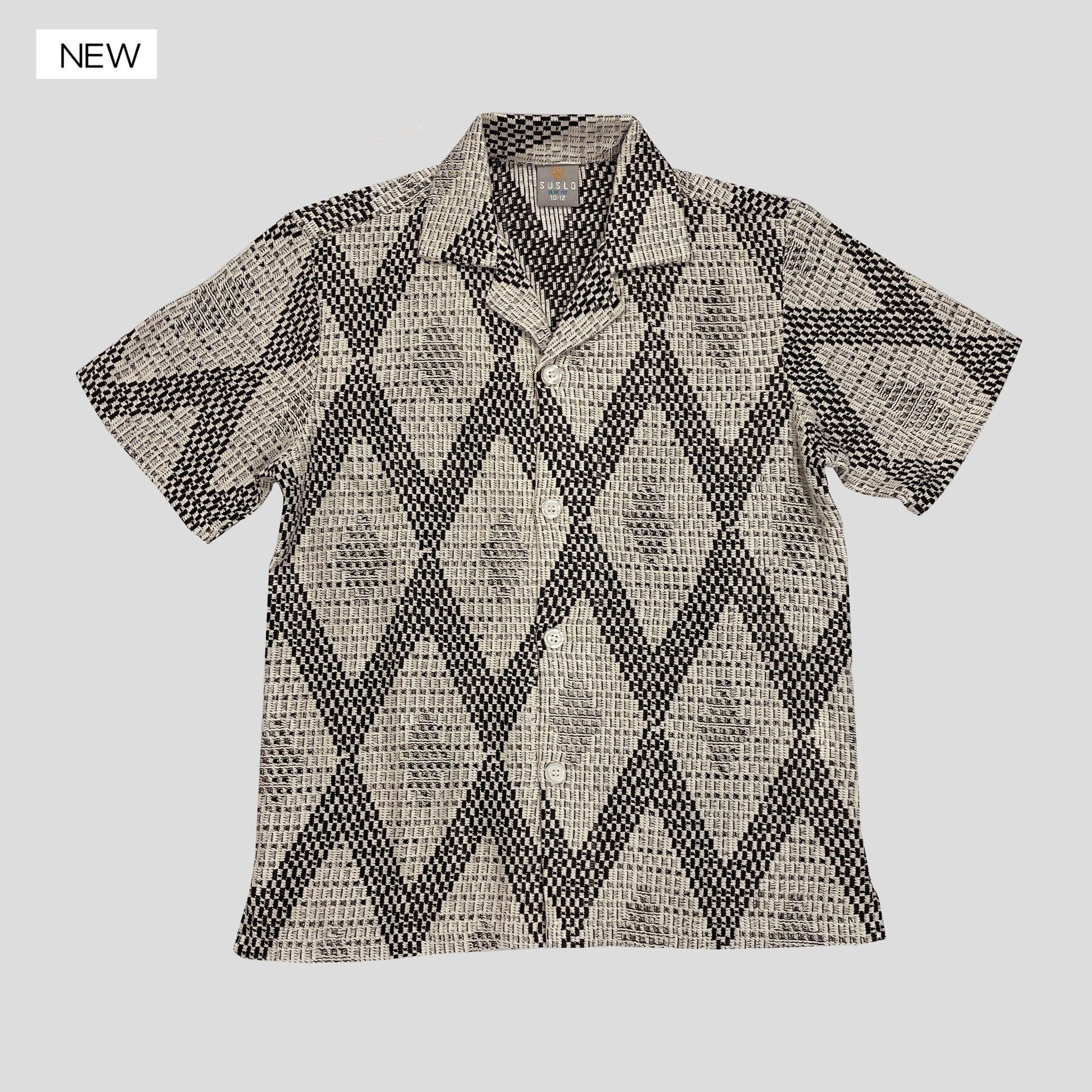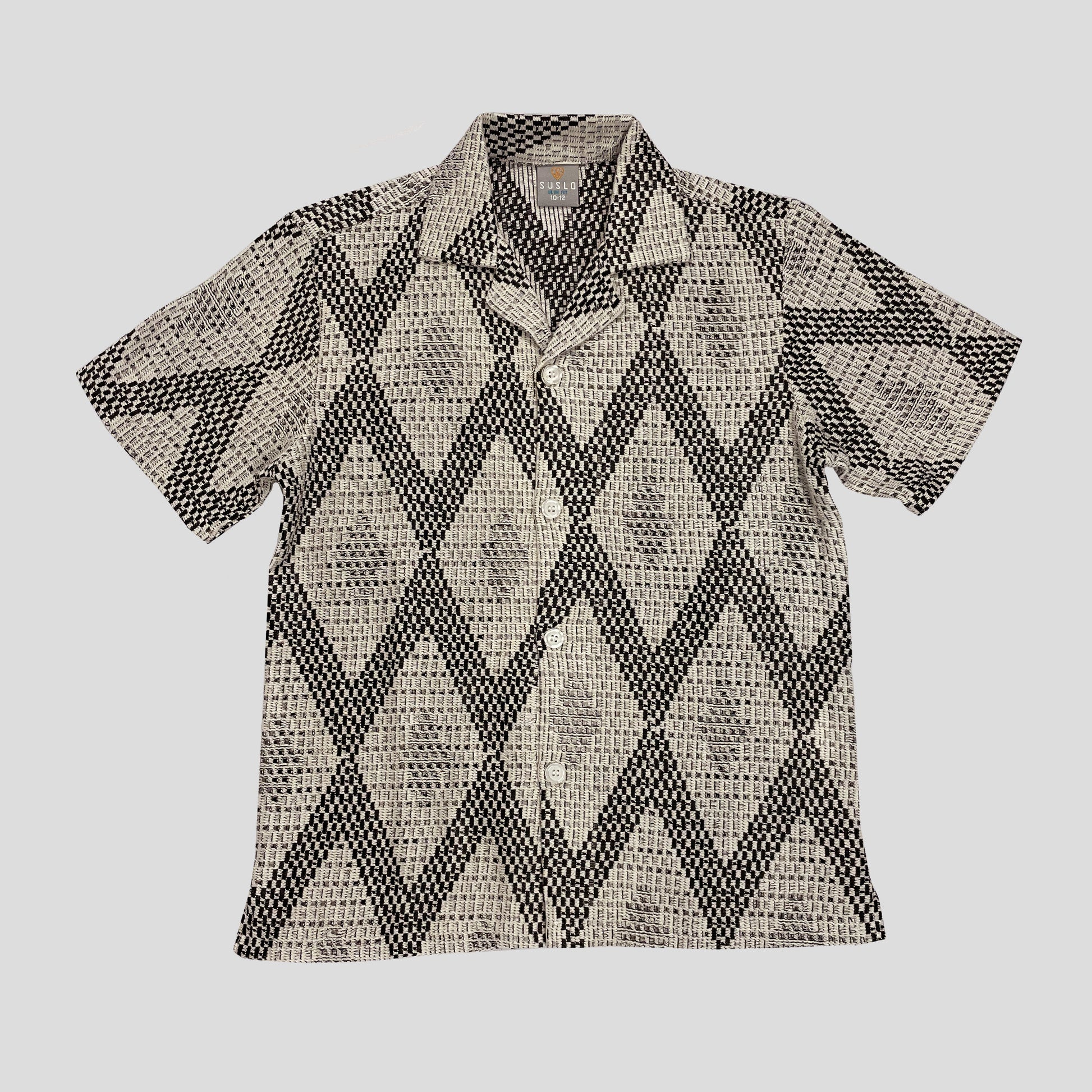 Esta camisa de diseño geométrico combina estilo moderno y comodidad en una sola prenda. Su patrón en tonos negro y beige crea un look sofisticado y versátil, ideal para ocasiones casuales o semi-formales. Confeccionada en una mezcla de 95% poliéster y 5% spandex, ofrece un ajuste flexible y suave al tacto, brindando frescura y libertad de movimiento durante todo el día.