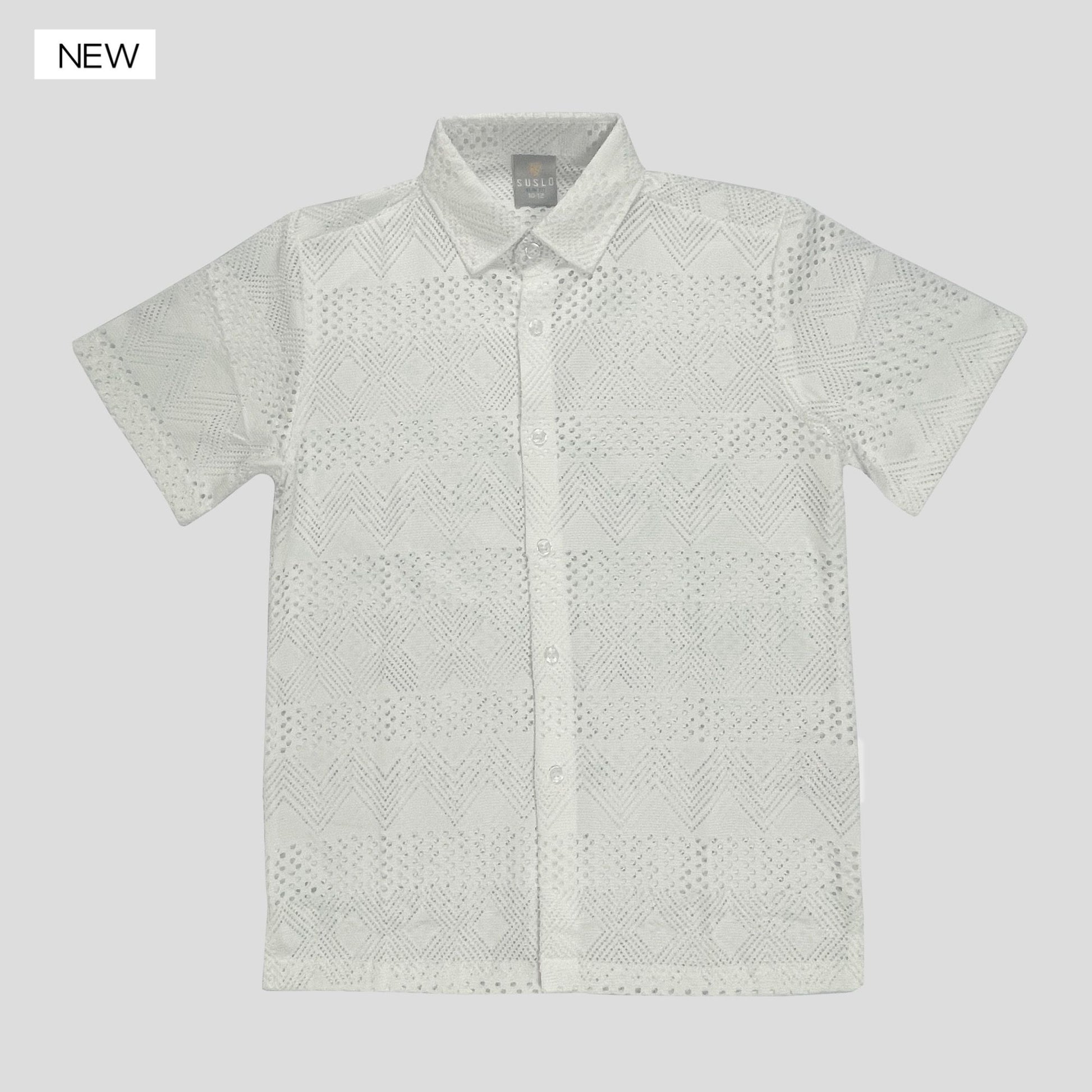 Esta camisa de diseño geométrico combina estilo moderno y comodidad en una sola prenda. Su patrón en tonos negro y beige crea un look sofisticado y versátil, ideal para ocasiones casuales o semi-formales. Confeccionada en una mezcla de 95% poliéster y 5% spandex, ofrece un ajuste flexible y suave al tacto, brindando frescura y libertad de movimiento durante todo el día.