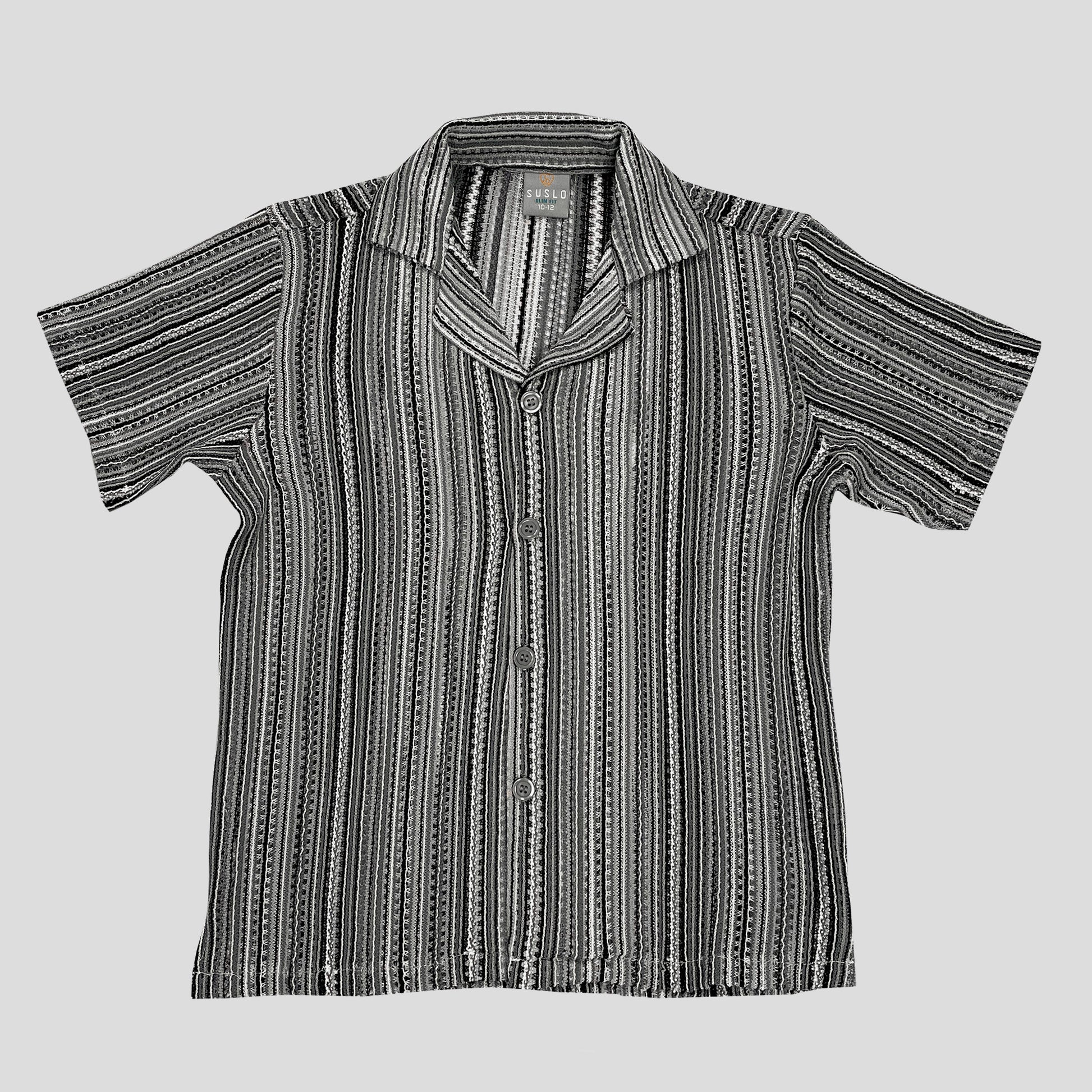 Esta camisa de diseño geométrico combina estilo moderno y comodidad en una sola prenda. Su patrón en tonos negro y beige crea un look sofisticado y versátil, ideal para ocasiones casuales o semi-formales. Confeccionada en una mezcla de 95% poliéster y 5% spandex, ofrece un ajuste flexible y suave al tacto, brindando frescura y libertad de movimiento durante todo el día.