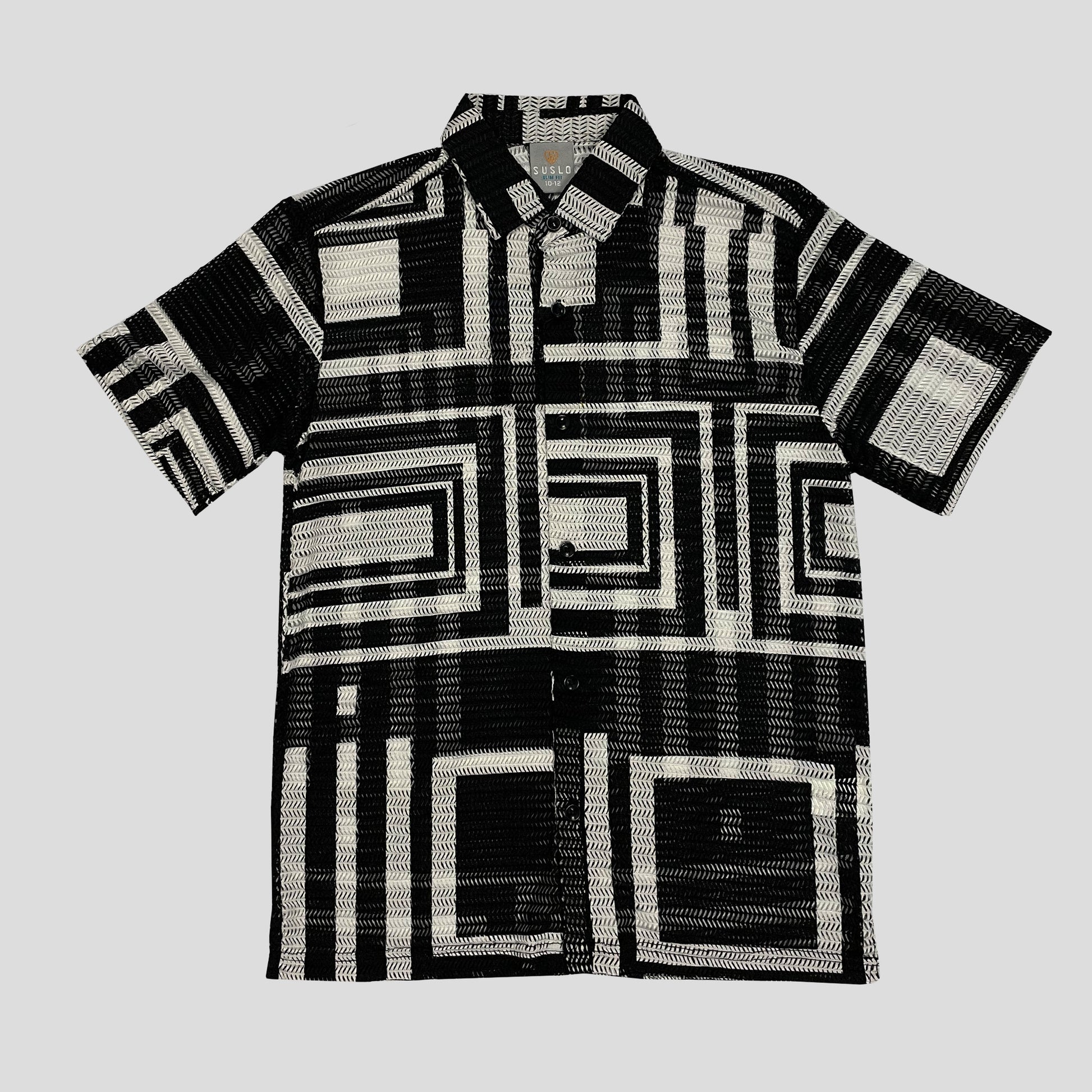 Esta camisa de diseño geométrico combina estilo moderno y comodidad en una sola prenda. Su patrón en tonos negro y beige crea un look sofisticado y versátil, ideal para ocasiones casuales o semi-formales. Confeccionada en una mezcla de 95% poliéster y 5% spandex, ofrece un ajuste flexible y suave al tacto, brindando frescura y libertad de movimiento durante todo el día.